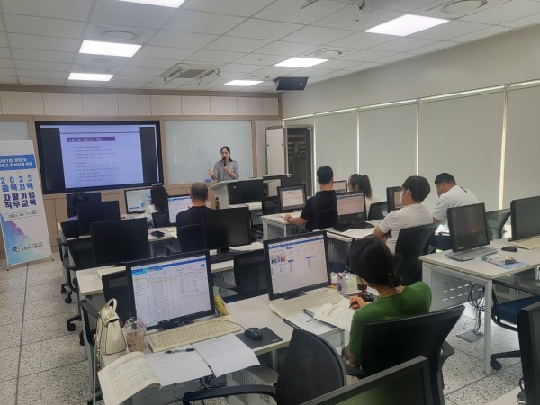 충북광역자활센터에서는 8월 17일(목) 10:00~13:00, 14:00~17:00 두 차례에 걸쳐 자활기업 대표 및 구성원, 지역자활센터 자활정보시스템 관리자 등 29명 대상으로 한국자활연수원에서 교육장(충주시 일대) 2023년 10월 정기 사업보고를 대비한 “2023 충북 자활기업 사업보고 실무역량강화 직무교육’을 실시하였다.