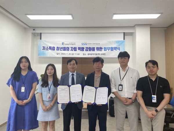 충북광역자활센터에서는 7월 28일 충북사회복지협의회와 함께 충북 도내 저소득층 청년들의 자립 역량 강화를 위한 업무협약을 체결했다.