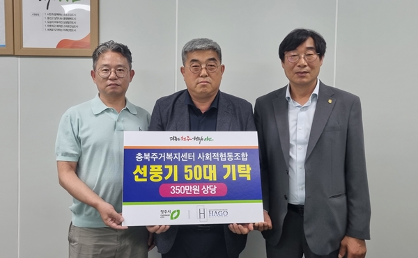 이성남 충북주거복지센터 사회적협동조합 이사장은 18일 청주시청을 방문해 주거 취약계층을 위한 선풍기 50대(350만원 상당)를 기탁했다.