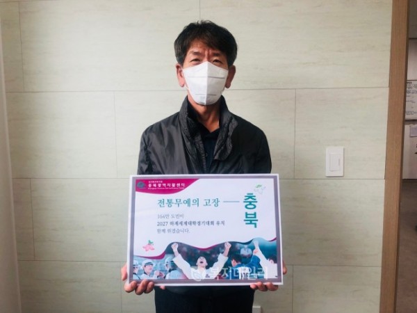 박재국 충북광역자활센터장은 7일 ‘2027 하계세계대학 경기대회 충청권(충북ㆍ대전ㆍ세종ㆍ충남)유치를 위한 응원 챌린지’에 참여하였다.