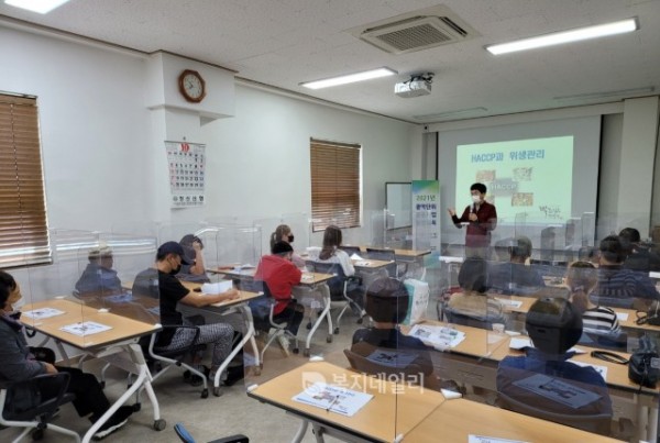 교육생은 “식품위생에서도 가장 중요한 식재료관리, 위생관리, 시설관리, 개인위생을 위주로 식품위생체계를 강화하기 위한 내용이 제공되어 유익한 시간이 되었다.”라며 “제조하고 있는 품목별 의무표기사항, 식품위생법의 대해서도 습득하였고, 법적기준에 근거하여 제조판매 하여야 하는 점에 대해서 배우는 계기가 되었다.”라고 소감을 밝혔다.