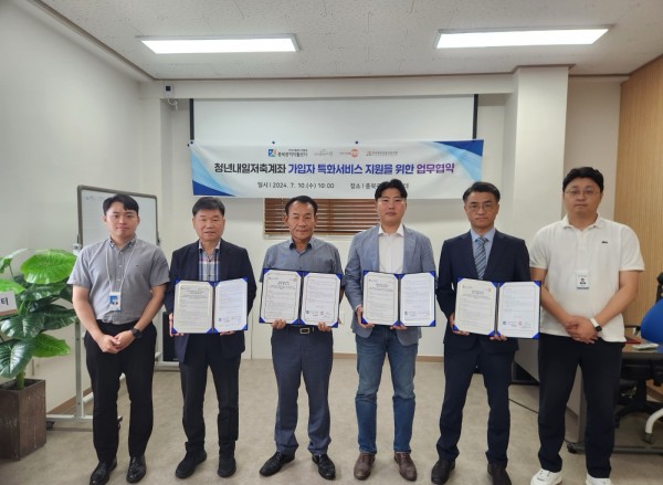 이번 협약은 불안정한 경제 상황, 미흡한 자산관리, 낮은 금융이해력 등으로 통장유지에 어려움을 겪고 있는 충북지역 청년내일저축계좌 가입자에게 특화서비스를 제공하는‘청년 가입자 특화서비스’사업의 활성화와 기반 구축을 위해 추진되었다.