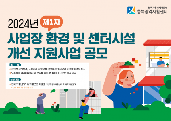 충북광역자활센터는 충북지역 12개 지역자활센터에 참여하고 있는 자활사업 참여주민의 복지환경개선을 지원하고자 지속적인 사업을 추진 중에 있다.