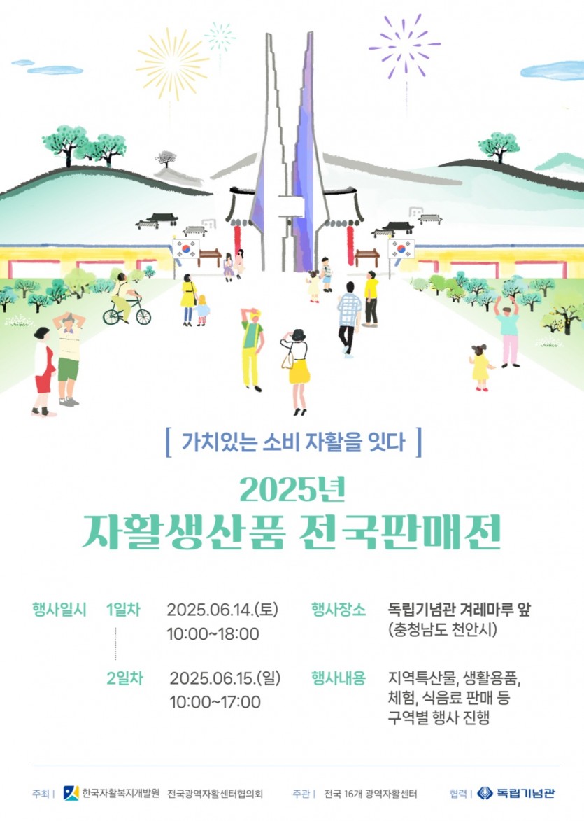 2025년 자활생산품 전국판매전을 6월 14일, 15일 양일간 독립기념관에서 진행합니다.