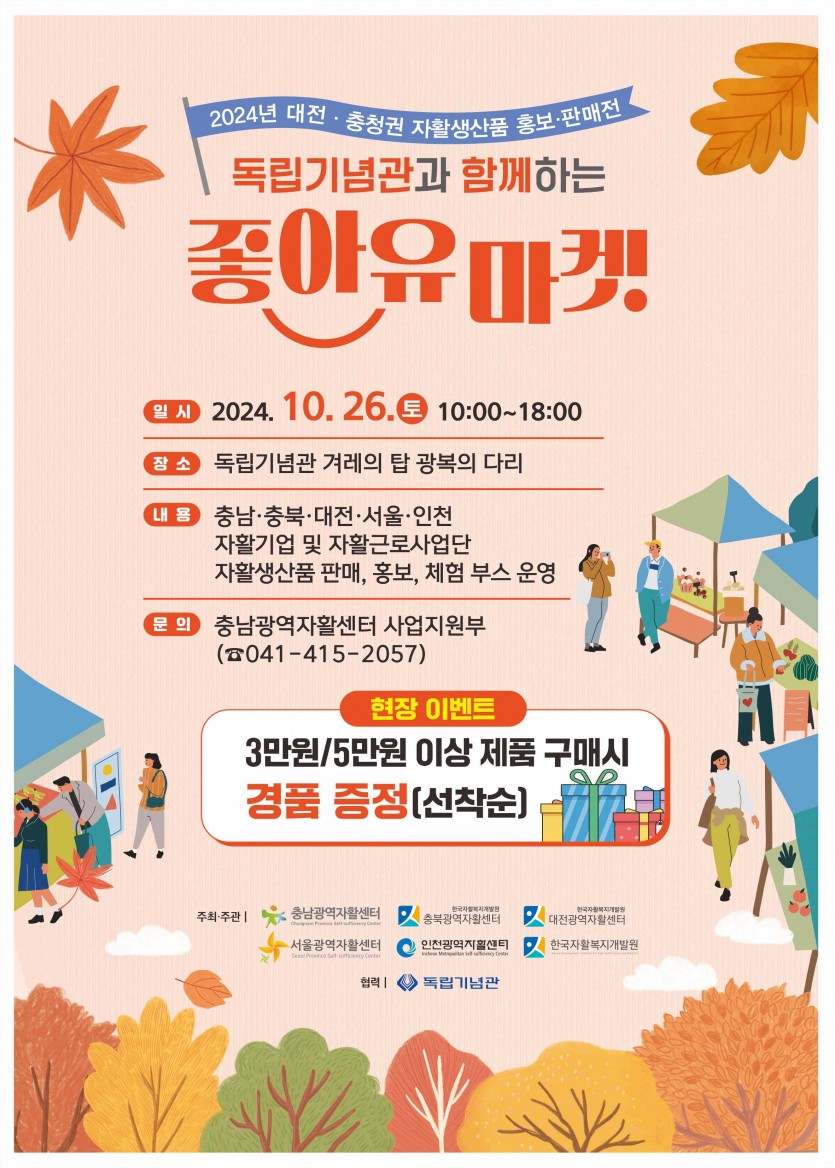 내용 : 충북·충남·대전·서울·인천 자활기업 및 자활근로사업단 자활생산품 판매, 홍보, 체험 부스 운영