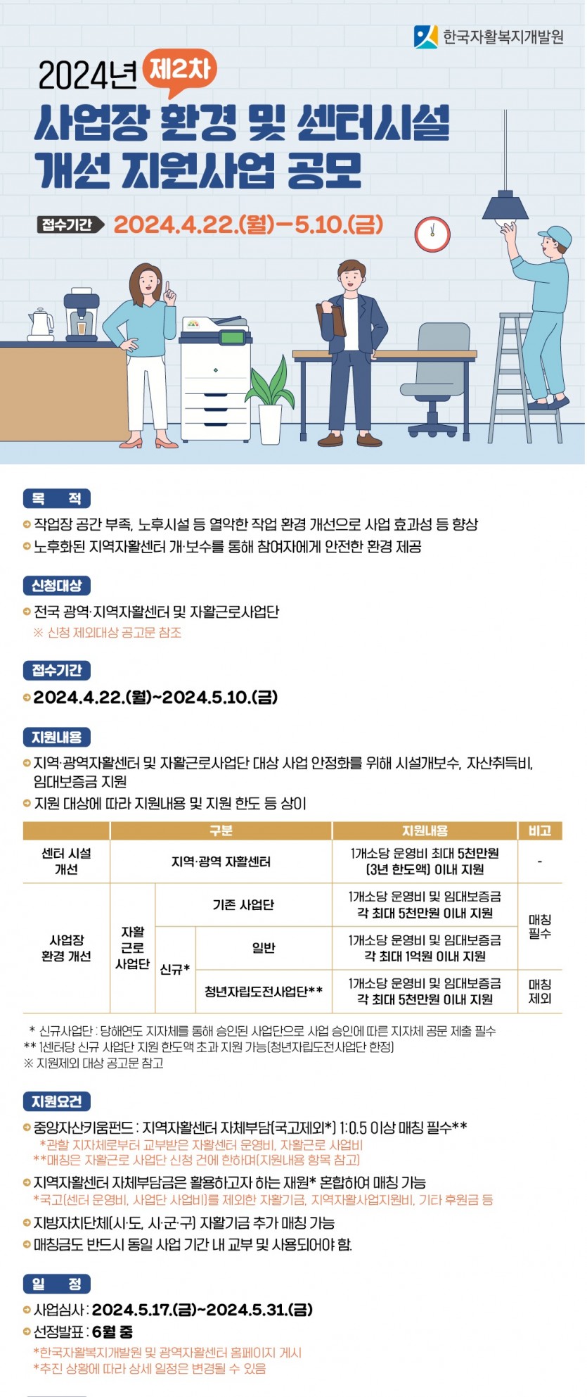2024년 제2차 사업장 환경 및 센터시설 개선 지원사업 공모